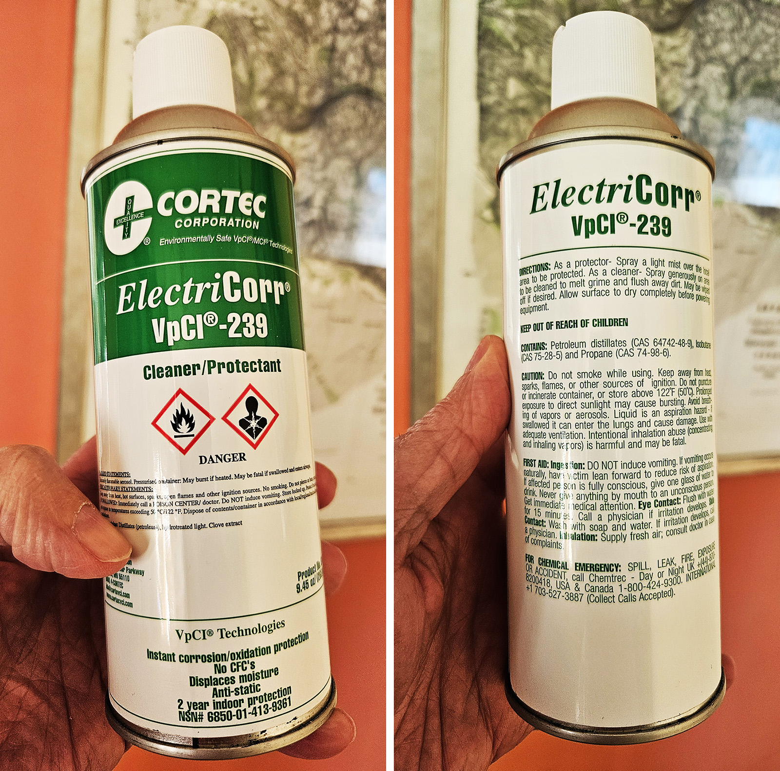 Zdecydowałem się na zakup kilku produktów firmy Cortec skuszony opisem ich skuteczności, by chronić swoje zbiory. Kupiłem trzy produkty, które wydawały mi się właściwe w konserwacji meteorytów: gąbki-emitery, emitery plastikowe i spray. Electri-Corr VpCI-239 – antystatyczny środek czyszczący i wypierający