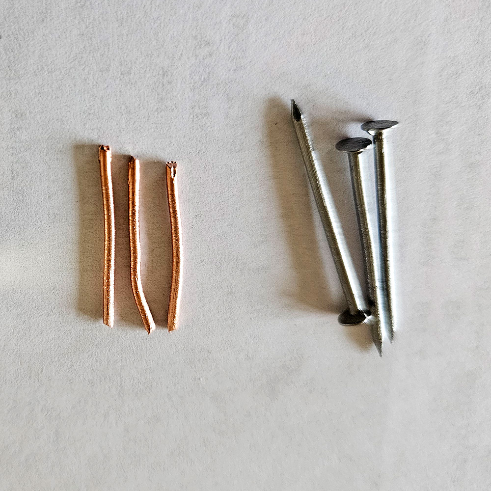 żelaznych gwoździków i miedziany drut (ta miedź to w zasadzie tylko dla towarzystwa, bo to nie ona sprawia kłopoty